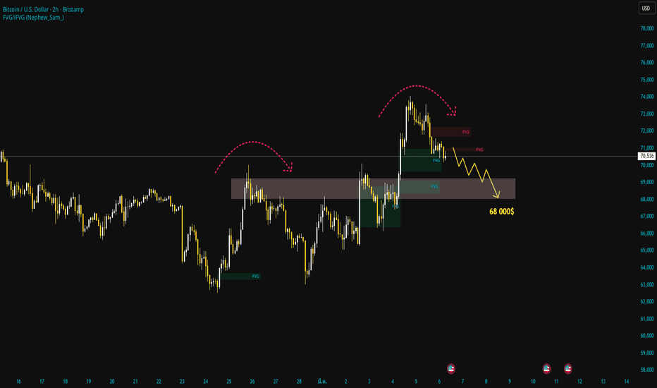 BTC – การกระจายตัวระยะสั้นก่อนการปรับตัวลงหลังจากที่ราคา Bitcoin พุ่งขึ้นอย่างแข็งแกร่งเมื่อเร็วๆ นี้ ราคาเริ่มแสดงสัญญาณอ่อนตัวลง โดยสร้างจุดสูงสุดที่ต่ำกว่าโซนอุปทานและ FVG ที่ระดับประมาณ 71,000–72,000 ดอลลาร์ บริเวณนี้เคยเป็นโซนการกระจายตัวหลัก ซึ่งแรงขายกลับมาอย่างรวดเร็วหลังจากสภาพคล่องถูกกวาดออกไป
