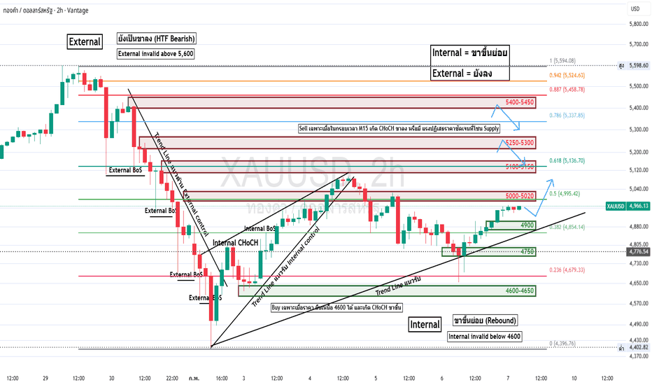 แผนเทรดทองคำสัปดาห์ที่ (9–15 ก.พ. 2026) XAUUSDราคาทองปัจจุบันอยู่แถวโซน 4,850–4,950 ดอลลาร์/ออนซ์ ใกล้จุดสูงใหม่ตลอดกาล สะท้อนเทรนด์หลักยังเป็นขาขึ้นชัดเจน ปัจจัยหนุนหลักคือความไม่แน่นอนทางการเมืองโลก ท่าทีประธานาธิบดีทรัมป์เรื่องภาษีและดอลลาร์อ่อน และความกังวลเรื่องเสถียรภาพนโยบายการเงินของเฟด ตลาดคาดว่าเฟดจะลดดอกเบี้ยรวมราว 150 จุดตลอดปี 2026