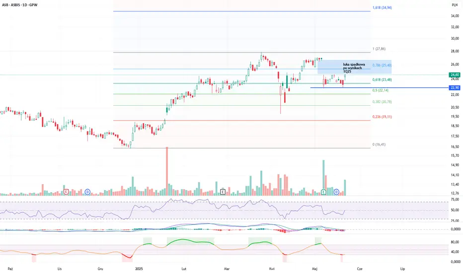 Jednocześnie jest do zamknięcia luka spadkowa związana z wynikami za 1Q25 na poziomie 26,8zł.