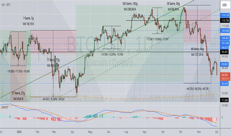 - Nel ribasso di inizio 2025 il prezzo è andato sotto il -30% ma l'ha fatto in 77 sessioni daily, mentre qui la discesa è stata molto più veloce, ragion per cui prestare molta attenzione a fare trading adesso.