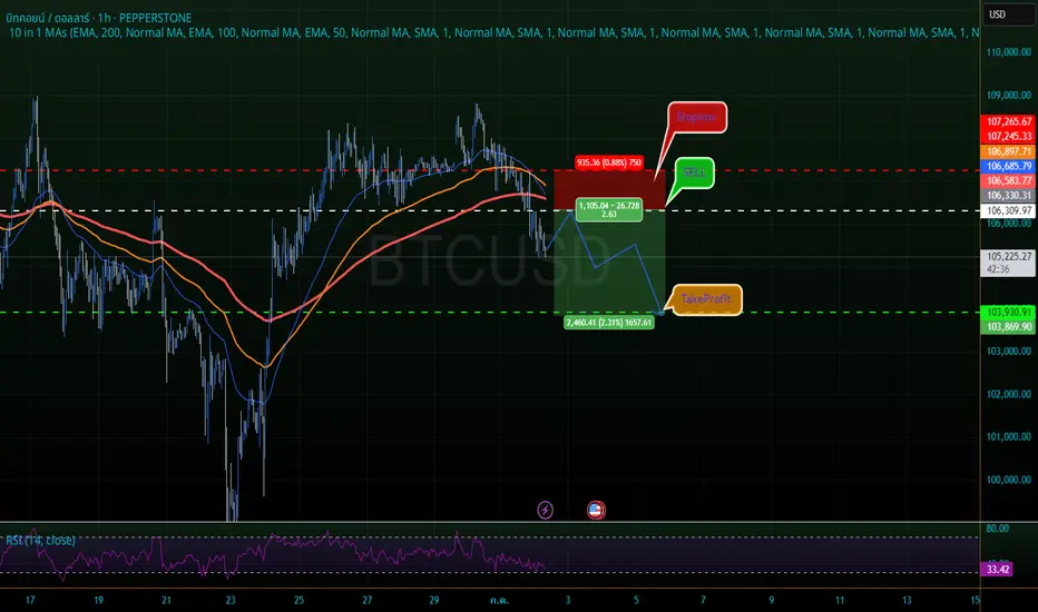 แนวรับ: 106,586.26 (ราคาเข้า), 106,209.97 (โดยประมาณ), 105,475.76 (โดยประมาณ), 103,930.91 (TP), 103,869.90 (โดยประมาณ)