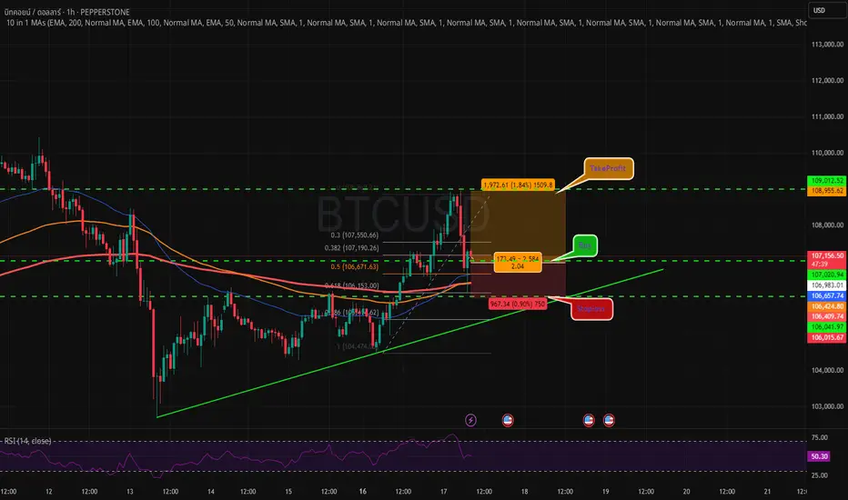 แนวรับ: 107,190.26 (Fib 0.382), 106,963.01 (โดยประมาณ), 106,657.27 (SL), 106,422.04 (โดยประมาณ), 106,408.36 (โดยประมาณ), 106,015.07 (โดยประมาณ)