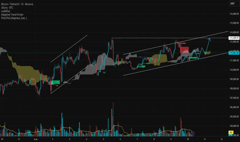 Bitcoin มีความผันผวนอยู่ที่ประมาณ 111.8k หลังจากดีดตัวขึ้นจากแนวรับและเข้าใกล้แนวต้านที่ 113.4k ในกราฟครึ่งแรก โครงสร้างราคายังคงอยู่ในช่องขาขึ้นระยะสั้น Ichimoku แสดงให้เห็นว่าราคาอยู่เหนือเมฆ โซน FVG ล่าสุดถูกเติมเต็มและสร้างฐานที่มั่นคง ปริมาณการซื้อขายมีสัญญาณลดลงเล็กน้อย RSI อยู่ในระดับกลาง ดังนั้นราคามีแนวโน้มที่จะปรับตัวลงเพื่อทดสอบแนวรับที่ 111.5k ก่อนที่จะพบโอกาสทะลุผ่าน
