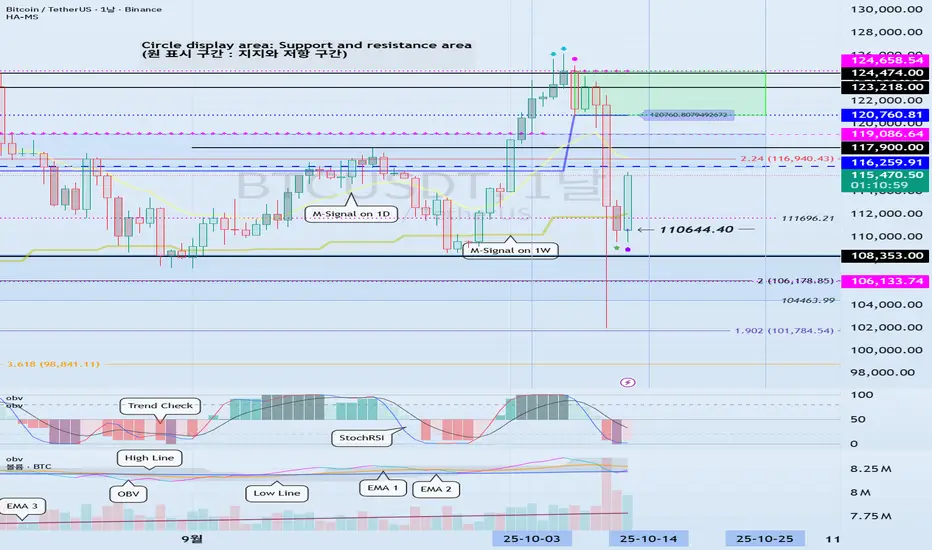 아무리 그렇다 하더라도 결국 1W 차트의 HA-High ~ DOM(60) 구간을 상향 돌파하여야 하기 때문에 116259.91-119086.64 구간 이상 상승하여 가격을 유지할 수 있는지를 살펴봐야 합니다.