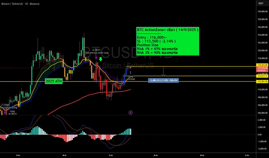 BTC ActionZone= เขียว ( 14/9/2025 )