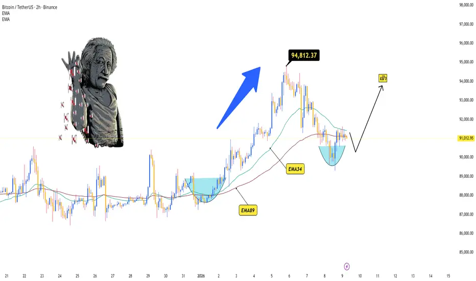 BTC กำลังปรับฐานอย่างเหมาะสมหลังจากแตะจุดสูงสุดที่ประมาณ 94.8K ราคาดีดตัวลงมาที่บริเวณ EMA34/89 และสร้างโครงสร้างฐานกลม/จุดต่ำสุดที่สูงขึ้น บ่งชี้ว่าผู้ซื้อยังคงควบคุมแนวโน้มหลักอยู่