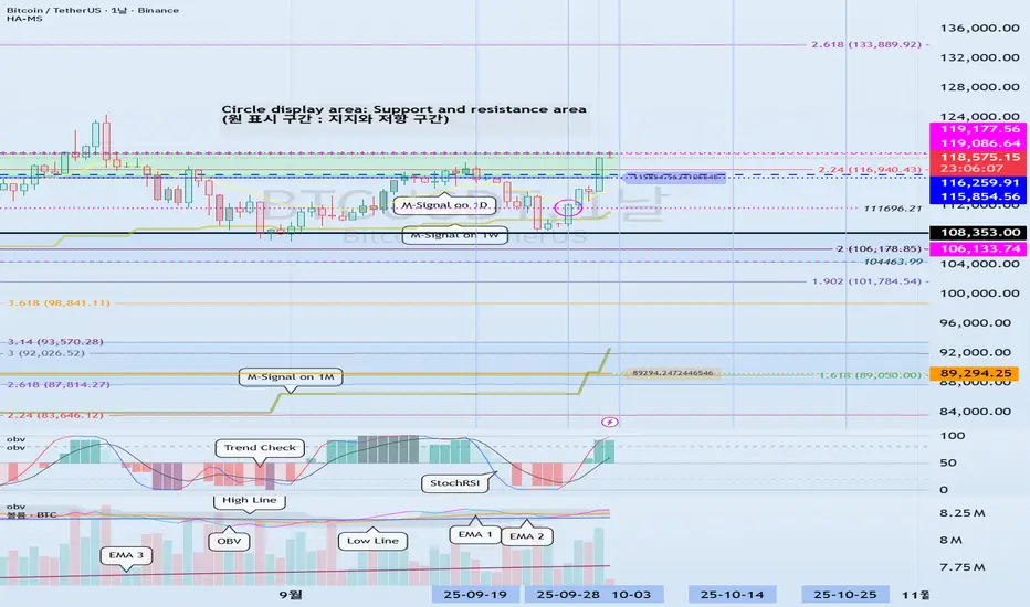 다만, HA-High ~ DOM(60) 구간에서 상승하게 되면 계단식 상승세를 보일 가능성이 있고, DOM(-60) ~ HA-Low 구간에서 하락하게 되면 계단식 하락세를 보일 가능성이 있습니다.