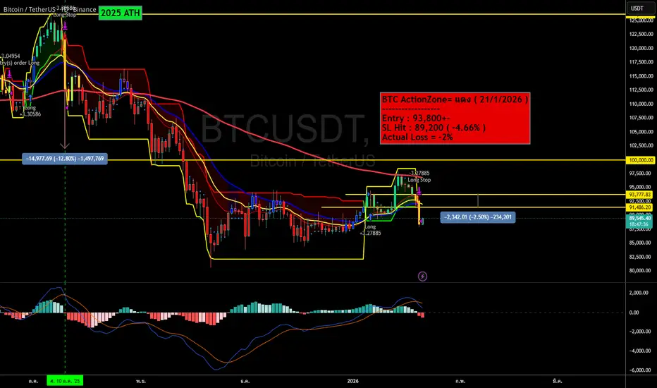 เริ่มปีมาก็โดนซะแล้ว แหม ทำเป็นดีดไปทดสอบ EMA120 แถว 96k พอชนปุ๊บก็ร่วงปั๊บเหมือนนัดกันมา สรุปก็ร่วงมาจนชน SL พลิกจากกำไรกันเป็นขาดทุนเฉย