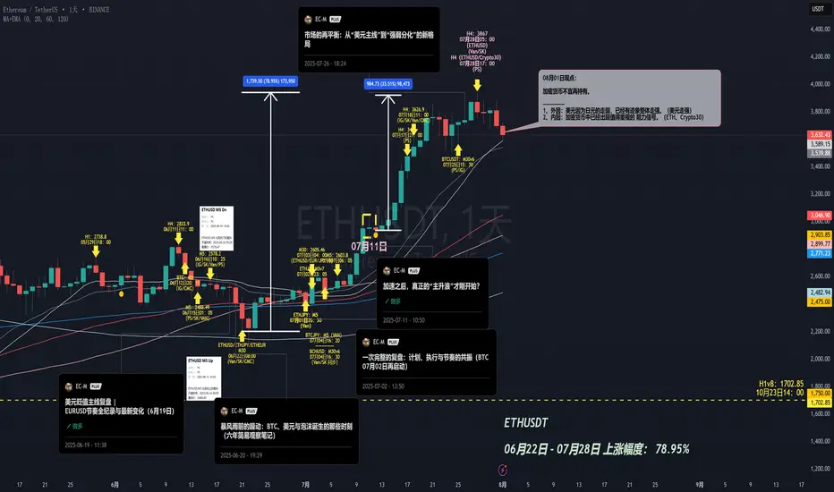 从6月底到7月,我们完整地经历了一轮由“美元走弱”驱动的加密货币主升浪。从剧本预告到计划执行,每一步都留下了清晰的记录。
