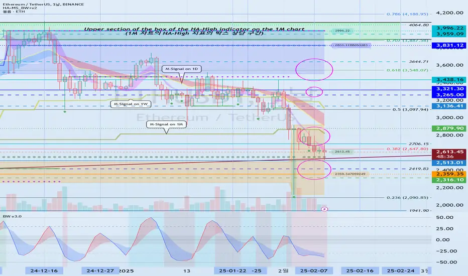 이에 따라서, 2513.01-2706.15 부근에서 지지 받고 MS-Signal (1M 차트의 M-Signal) 지표 이상 상승할 수 있는지가 관건입니다.