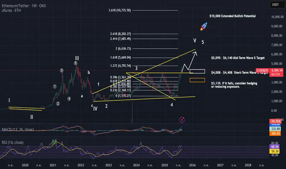 If ETH can break and sustain above $4,400 with strong volume, Wave 5 will likely extend higher.