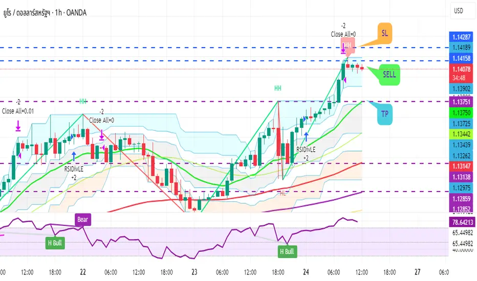 RSI : เป็นขาขึ้น แต่เริ่มมีสัญญาณกลับตัวลงเล็กน้อย เน้นทำกำไรตามกรอบแนวรับแนวต้าน ซึ่งเป็นตัวกำหนดจุดกำไร และตั้ง SL ระยะห่างไม่ไกลมากเพื่อป้องกันความเสี่ยง เน้นจบปิดกำไรรายวัน และอาจปิดเร็วขึ้น หากกำไรเป็นที่พอรับได้ โดยมีตั้งกำไร TP และตั้ง SL ไม่ไกลจากแนวรับแนวต้านเดิม ทั้งใน TF1H และ 4H และจะทำการล๊อคกำไรจาก TSL ด้วยระดับหนึ่ง