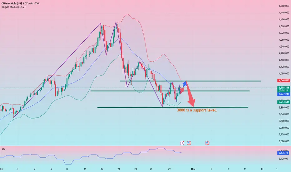 Looking at the 4-hour chart, the current short-term resistance level to watch is 3978-85, with a key resistance level at 4047-55. Short-term support is around 3915-20. Trading should focus on range trading; avoid chasing the market and wait patiently for key entry points. Specific trading strategies will be provided during trading hours, so please pay close attention.