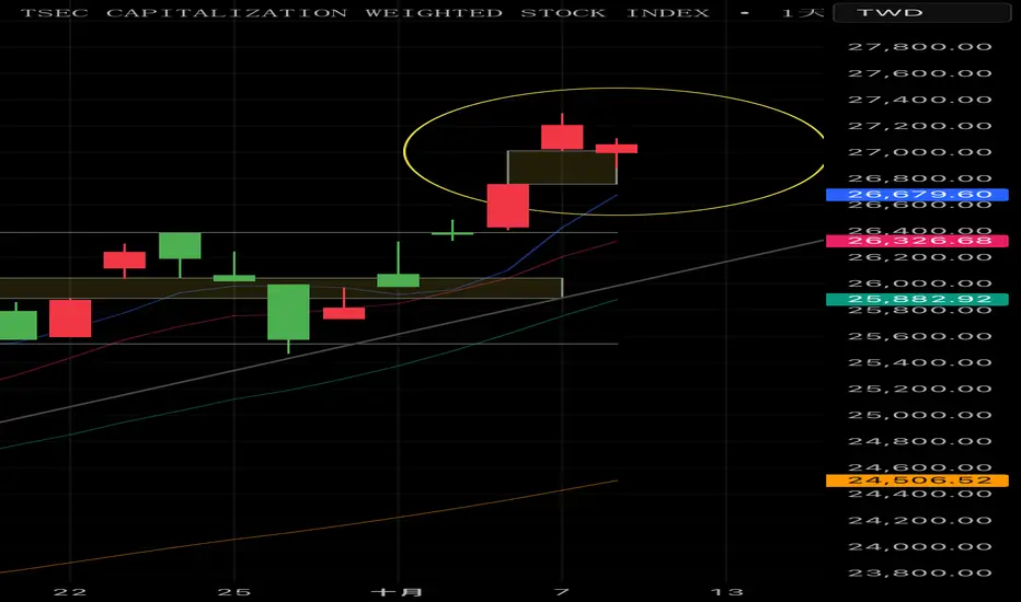 加權昨收盤跌勢收斂跌148點且未封閉多方缺口型態上已比美指強勢!加上美指那斯達克/期指夜盤創高及費半/台積adr仍都收在5ma之上,今加權上漲機率高並有機會再創新高!