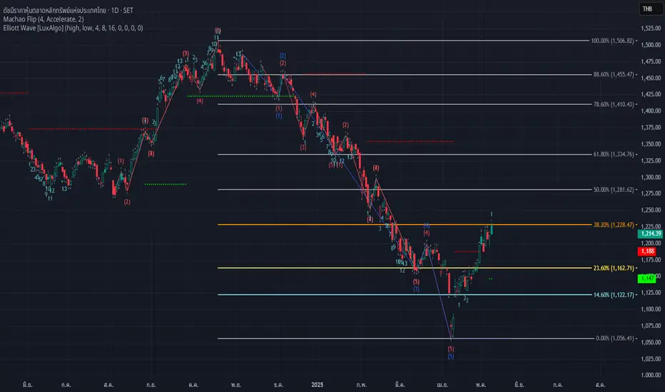 • มีโอกาสเป็น คลื่น (B) ใน ABC corrective structure → หากไม่สามารถผ่าน 1,228 ได้อย่างมั่นคง อาจโดนเทขาย