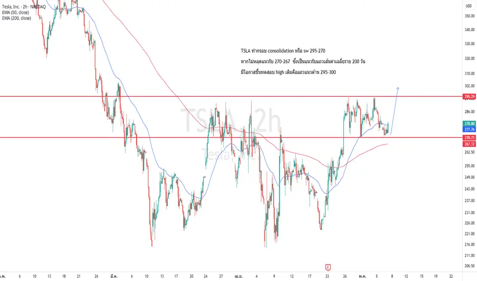 TSLA ทำกรอบ consolidation หรือ sw 295-270