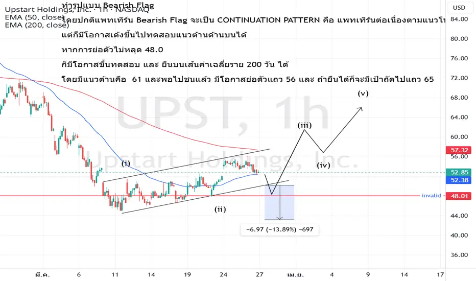 โดยปกติแพทเทิร์น Bearish Flag จะเป็น CONTINUATION PATTERN คือ แพทเทิร์นต่อเนื่องตามแนวโน้ม โดยหากหลุด 48 ก็มีโอกาสลงไปตามเป้า Bearish Flag ได้คือ 43-40