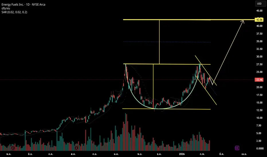 UUUU is cup and handle pattern. It will break out soon. The target price is 42.