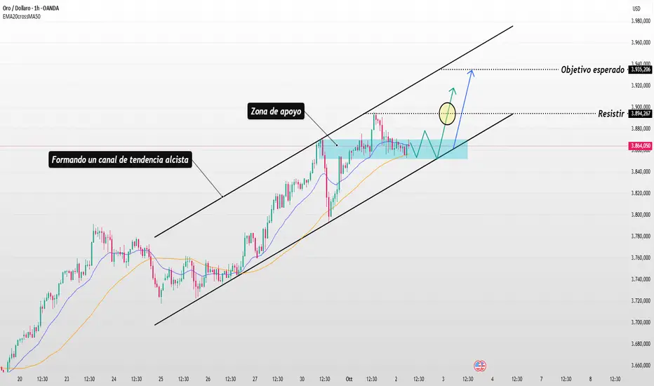 Il prezzo dell'oro (XAUUSD) si mantiene stabile nel canale rialzista, oscillando attualmente intorno a 3.864. Dopo una breve correzione, l'oro ha ripetutamente testato la zona di supporto dinamico EMA20/MA50 + la trendline inferiore, dimostrando che il potere d'acquisto rimane forte.