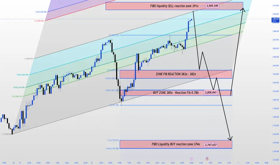3,830 – 3,820 (แนวรับฟิโบ) → ระดับการดึงกลับครั้งแรกสำหรับผู้ซื้อภายในวัน