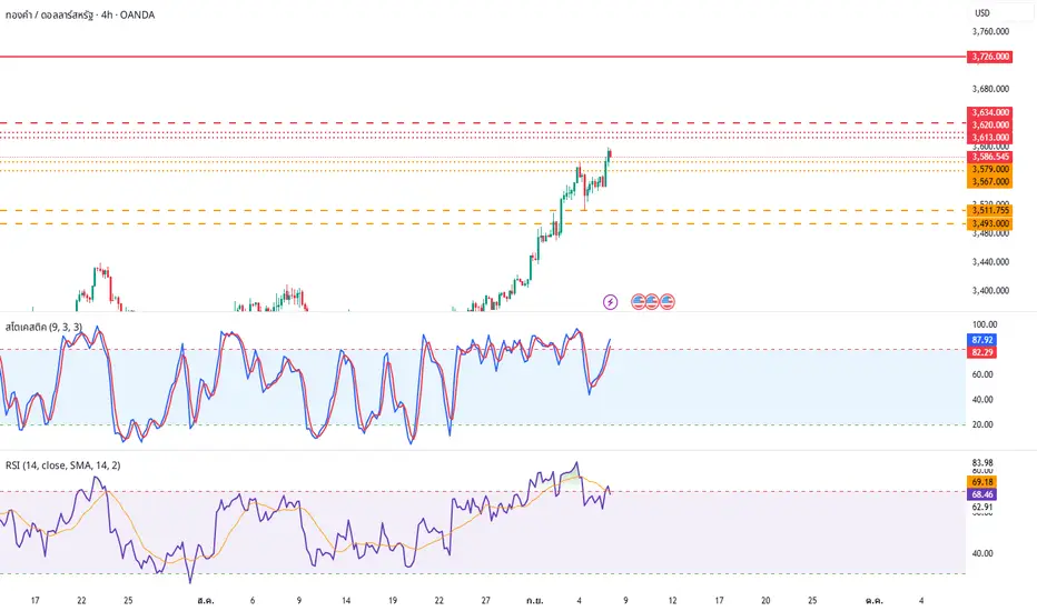 แนวต้านโซนแรก หากราคาทองคำยังคงขึ้นต่อจะมีต้าน 3597 - 3600 และต้านถัดไป 3613 - 3620