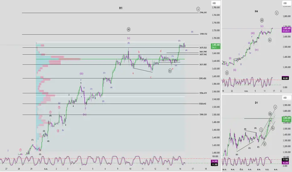 • H4: คลื่น iv (สีดำ) มีแนวโน้มว่าจะเสร็จสิ้นแล้ว ด้วยโมเมนตัม H4 ที่เริ่มอ่อนลง คลื่นที่ 1 ของคลื่น v (สีดำ) อาจเสร็จสิ้น และตลาดกำลังเข้าสู่ช่วงการปรับฐาน