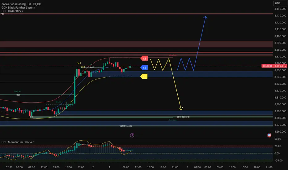 แนวต้าน (Resistance) แนวต้าน High ล่าสุด 3360-3369 หากราคาเบรกทะลุได้ จะมี POI +GDH Supply อยู่ 3400-3440 และ 3460