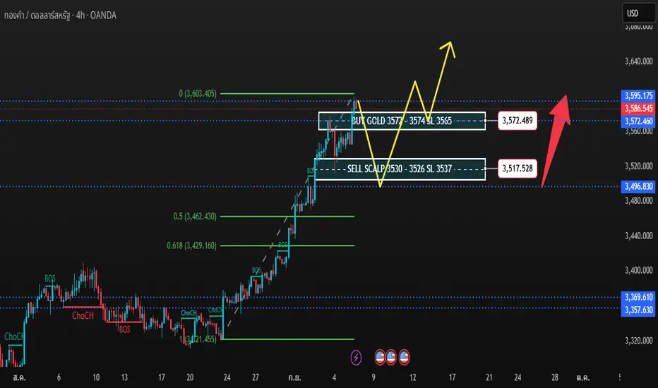 🔽 โซนขายสั้น (Scalp) 3,530 – 3,526 (SL 3,537): โซนอุปทานระยะสั้น/โซน Pivot เหมาะกับการเก็งกำไรสั้นถ้าราคาถูกปฏิเสธ
