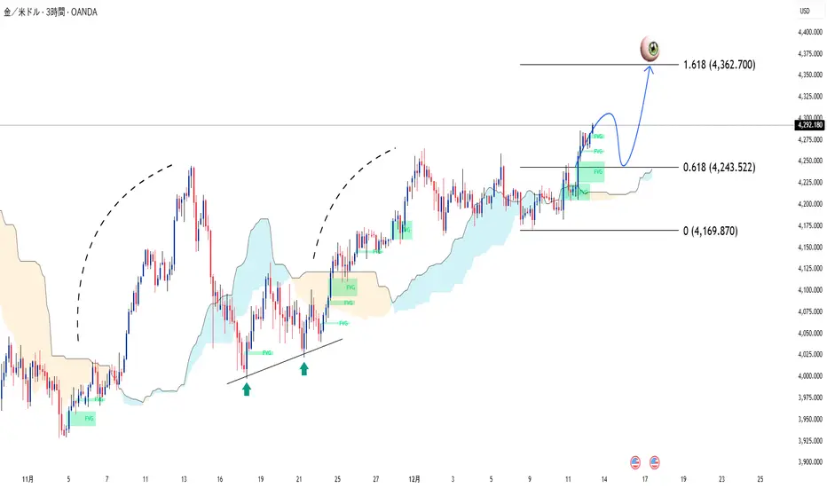 金は、一連の高値安値が形成され、さらに厚い一目雲に支えられながら、安定した上昇トレンドで推移し続けており、強気の勢いがまだ強固であることを示唆しています。 FVG - 公正価値ギャップ領域は継続的に出現し、非常にきれいに埋められます。これは、市場がキャッシュ フローに応じた標準的な構造を維持していることを反映しています。