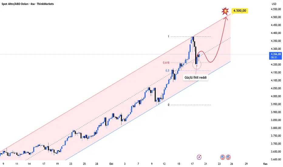 Yükseliş ivmesi devam ederse, altın kanalın üst sınırını kırabilir ve hareketini daha yüksek seviyelere doğru sürdürebilir. Mevcut piyasa koşulları göz önüne alındığında, 4500 seviyesi mantıklı ve genel trende uygun bir hedef olarak görünüyor.