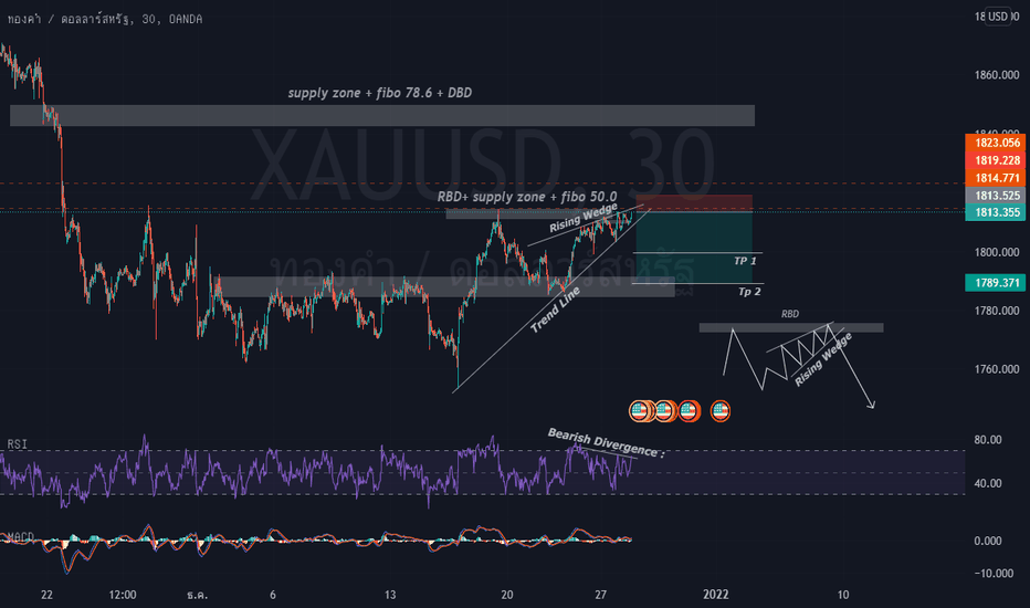แผนเทรด XAU/USDแผนเทรด XAUUSD เริ่มแผนใหม่ ภาพใหญ่ ในตอนนี้ราคาได้ปรับตัวขึ้นมาเรื่อยๆ เเละได้ทำเเพทเทิร์น Rising Wedge พร้อบกับ Bearish Divergence : เเละเป็นโซน ของ fibo 50.0 เป็นระยะสำคัญ มาก พร้อบ ตรงกับ supply zone RBD ถ้าจะเอาให้ดี รอให้ราคาเบรคกรอบ ลงมาก่อนเเละขึ้นไปรีเทส เเล้วค่อยเข้า sell จะดีมาก