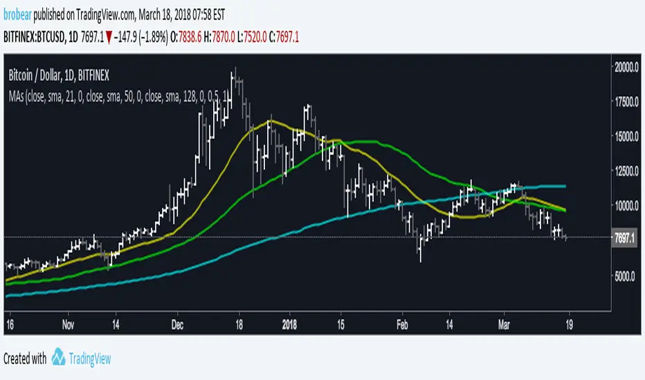 This moving average bundle helps me get a feel for how different TA filters work, or don't work... or how they relate to each other. It's fascinating! I've spent too much time combining filters in unconventional ways, experimenting... playing. Oh, and trading too. Hope you find it useful :)