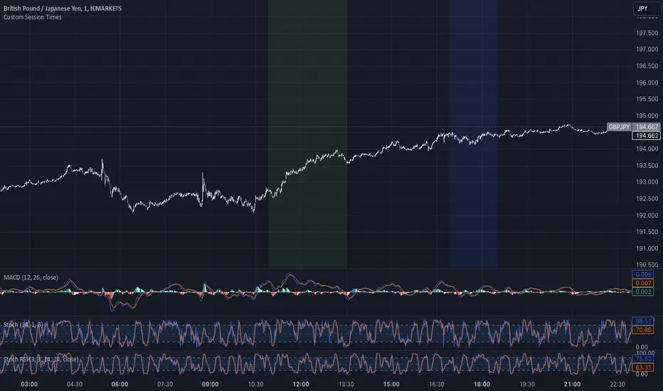 Lines: Session time ranges are also marked with clear lines on the chart, making it easier to identify the specific session periods.
