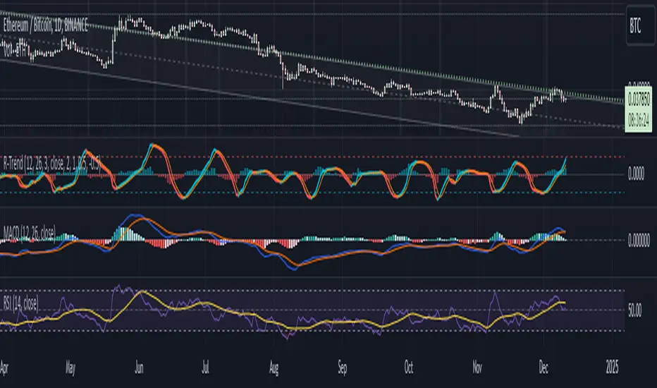 The Pearson's R Trend Indicator is an advanced technical analysis tool that measures the strength and direction of price trends using statistical correlation. By comparing fast and slow-period Pearson correlation coefficients, this indicator helps identify trend momentum, potential reversals, and overbought/oversold conditions.