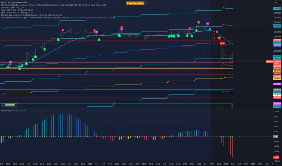 Wave Logic 5 is optimized for 5-minute charts and is intended to be used as a lower-timeframe execution framework with higher-timeframe context layered in.