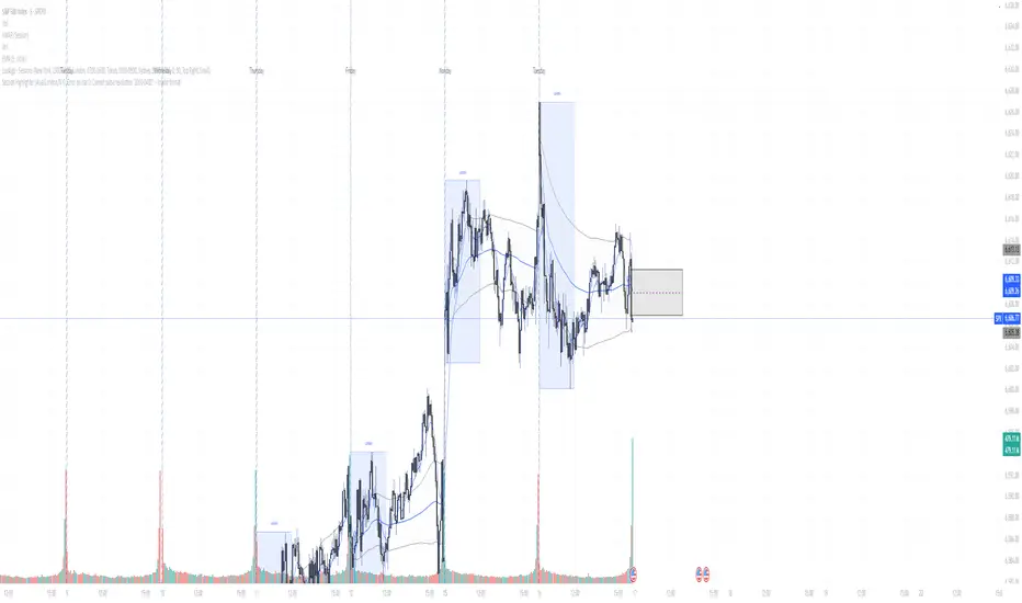 This makes it easy to quickly see which session you’re in, identify overlaps (such as London–New York), and analyze session-based price behavior.