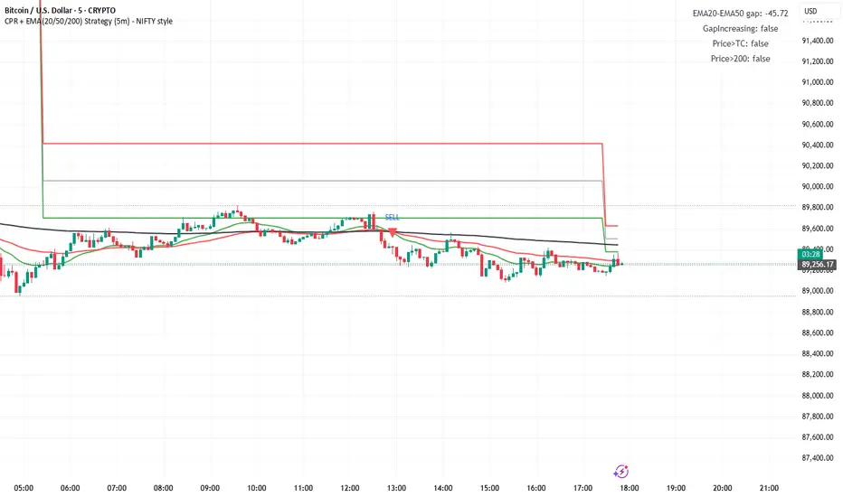 CPR + EMA(20/50/200) Strategy (5m) - NIFTY style