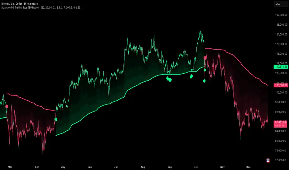 Adaptive ML Trailing Stop [BOSWaves] – Regime-Aware Risk Control with KAMA Adaptation and Pattern-Based Intelligence