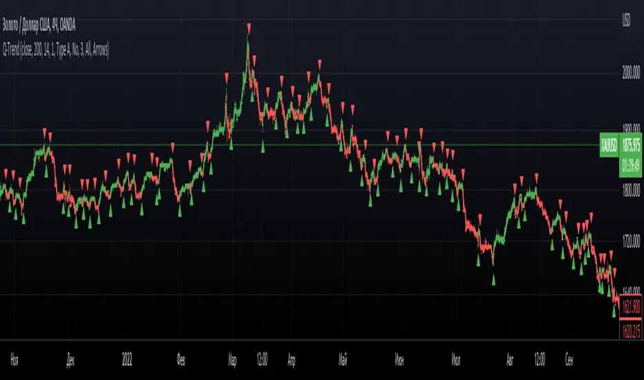 Q-Trend is an multipurpose indicatorm that can be used for swing- and trend-trading equally on any timeframe (non-volatile markets are better for this thing).