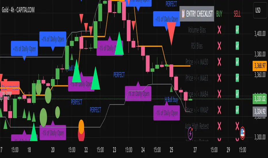 This indicator maps institutional session behavior by tracking the Asia, London, and New York trading sessions. It highlights key price levels including: