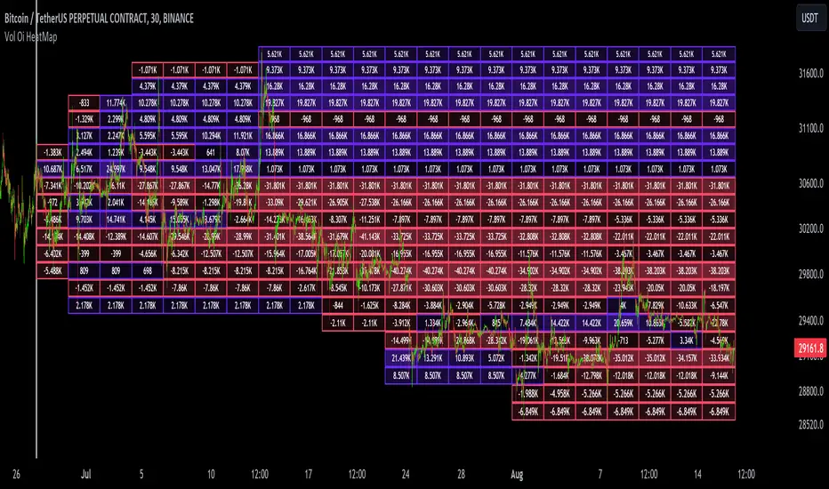 This script draws a volume delta or open interest delta heatmap for the asset on your chart.