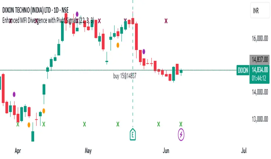 To ensure high-confidence signals, the script uses pivot point logic to mark local highs and lows on both price and MFI. This avoids noise and focuses only on meaningful swing points.