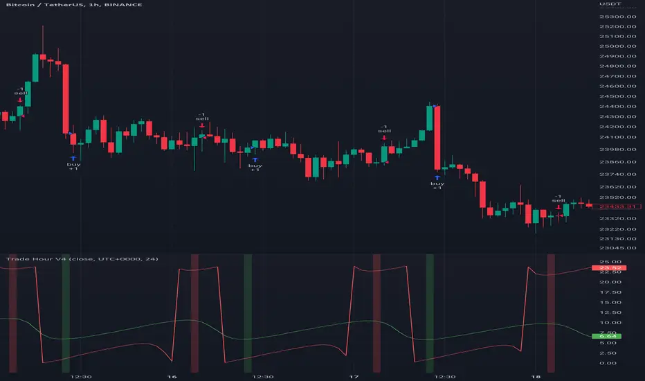For example if the red line is on the 0.63 on BTC/USDT chart it mean the start of 12AM hour on a day is the best hour to buy (all based on