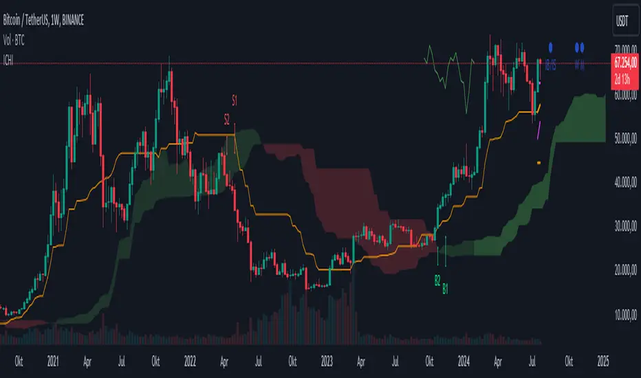 price > Kumo AND Chikou > price AND Chikou > Kumo AND Tenkan > Kijun AND Komo is green