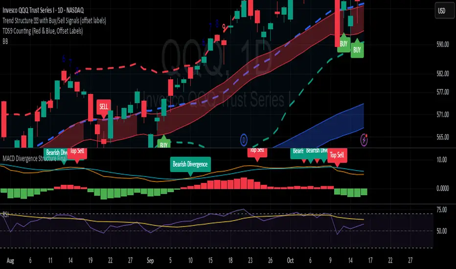 This indicator enhances the classic MACD by automatically detecting and labeling key divergence structures. It highlights bullish and bearish divergences, as well as potential sell tops and disappearing tops, directly on the chart. By combining EMA‑based MACD calculations with dynamic label plotting, it provides traders with clear, actionable signals to anticipate possible trend reversals or momentum shifts. Designed for flexibility and clarity, it helps traders quickly spot hidden market structure changes without cluttering the chart.