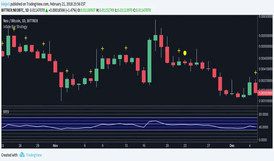 Indicates a single inside bar with a yellow plus symbol and two inside bars in a row with a yellow circle.
