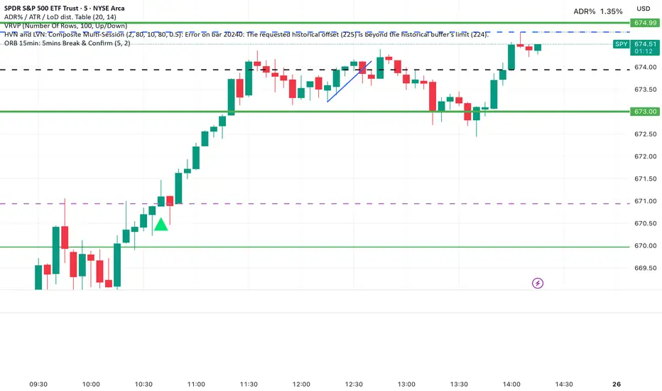 Using the 15-minute opening candle range, this generates an alert when a 5-minute candle breaks the range and another 5-minute candle closes above the breakout candle's high or the high of any other candle that attempted to break the range.