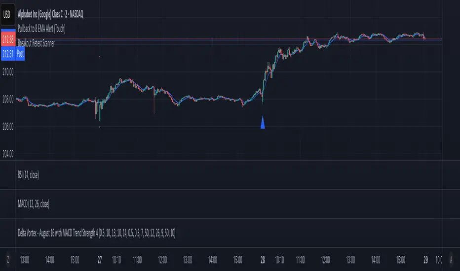 Still working on it, but break the previous day high or low, retest and get an alert of some sort.