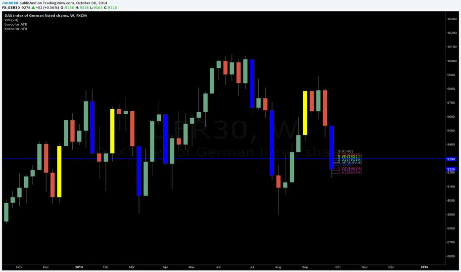 Script highlights bars over ATR (20), i use this to look for mazabuzo candles.