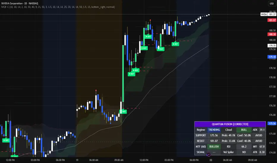 Automated Confluence: Unlike the previous tool which required manual interpretation, MQF mathematically fuses the Zone Score, Trend Cloud, and Volume analysis to filter false positives automatically.